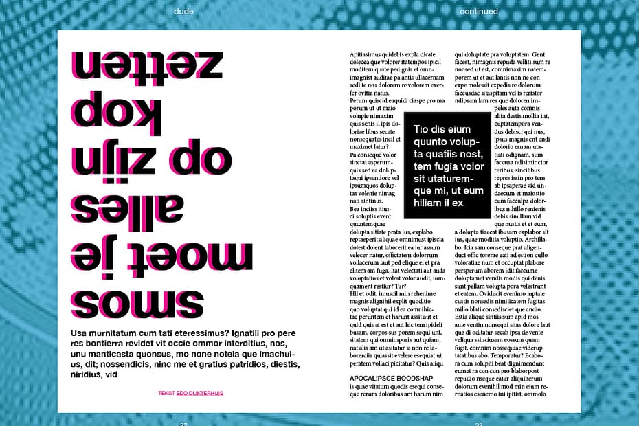 week 6 inspiring examples of editorial designs & why i chose them expressive layout, images flowing on both pages of the spread, fragmented and a… Read More »STUDIO EDITORIAL DESIGN week 6-11