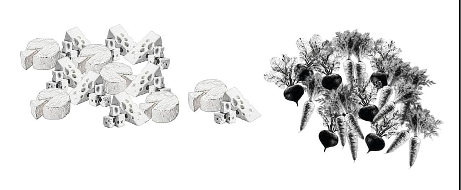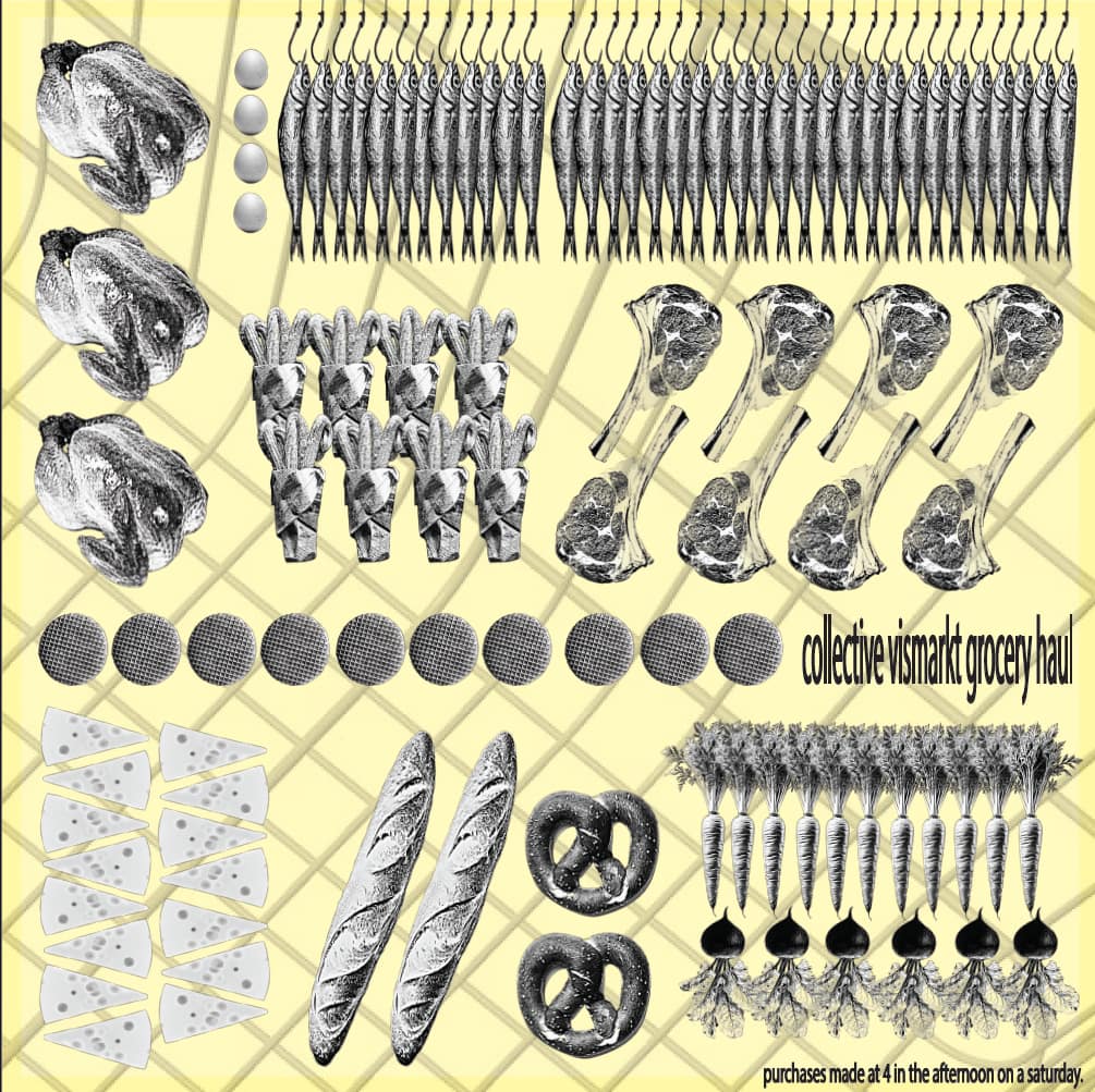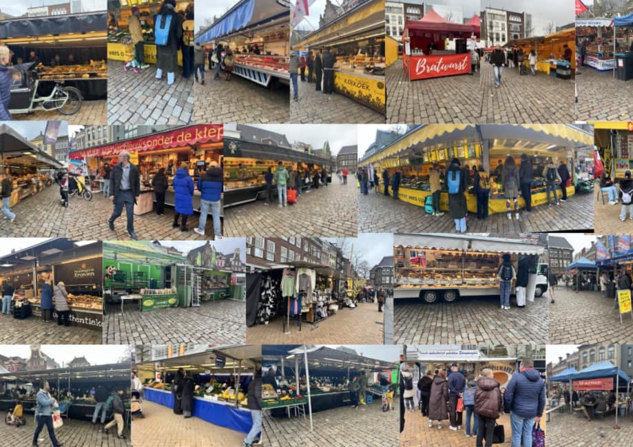 Kaas: 15 ---- Vlees: 7 ---- Poelier: 7 ---- Vis: 36 ---- Koek (stroopwafels + churros): 18 ---- Bakker: 4 ---- Groente: 17