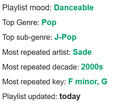 energy: 84/100 _ danceability: 75/100 _ happiness: 77/100