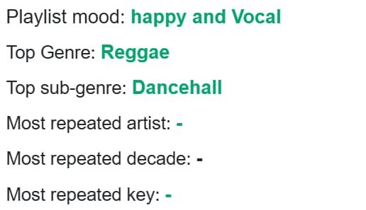 energy: 54/100 _ danceability: 71/100 _ happiness: 64/100