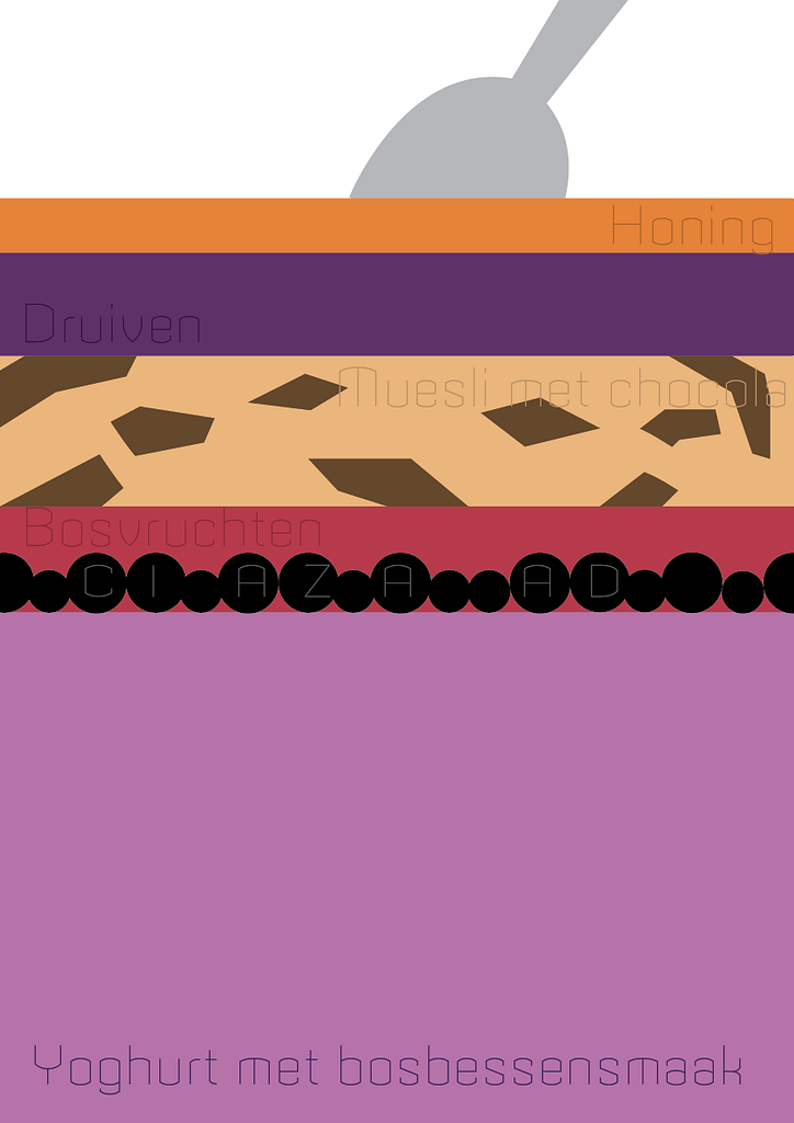 - Alpro yoghurt met bessensmaak: 51 kcal * 2,3g vet * 2,1g suiker * 0,25g zout