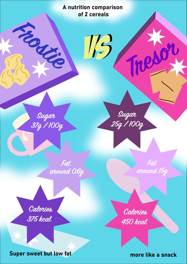 Choose one part of your breakfast and find factual information about it. I choose to compare nutrition in 2 cereals that I ate everyday