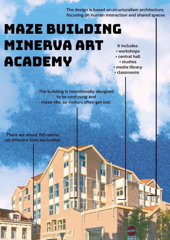 A. Find a topic/theme around Minerva (Zuiderdiep) and collect factual information. Why did you choose this topic/theme, what data do you find, which do you find interesting and why. Describe: As a new student the minerva building really confusing but interesting at the same time so I choose to describe some information that make this building even more interesting.