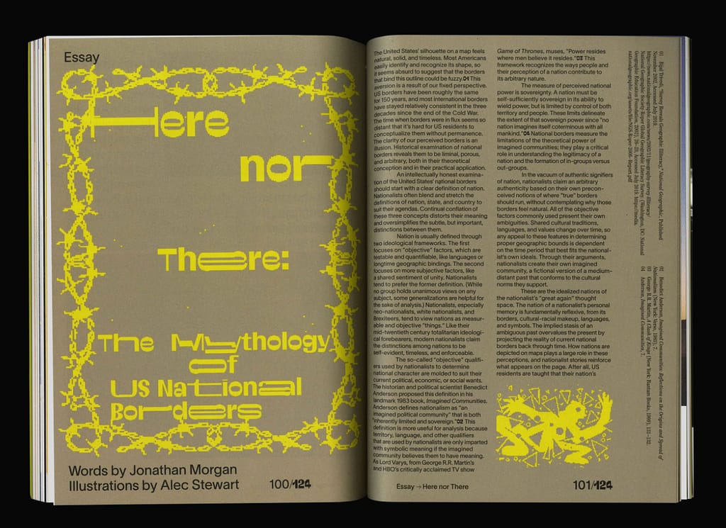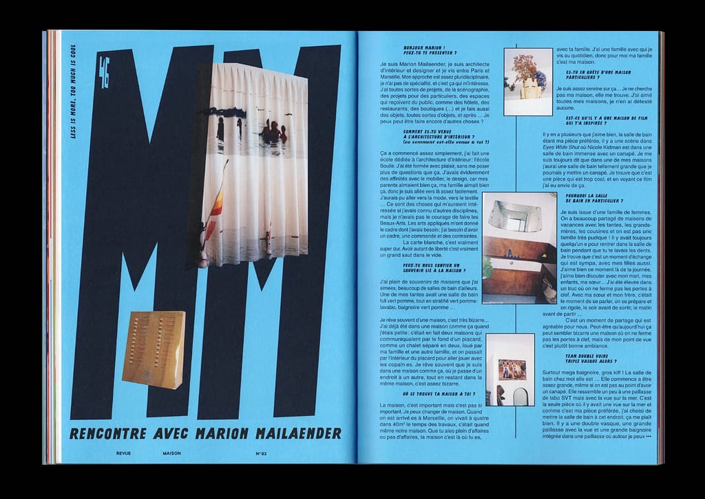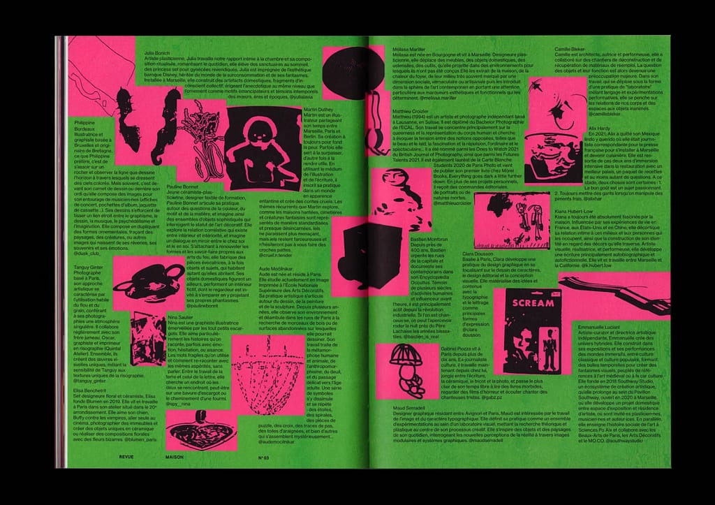 - great use of contrast colours, experimantal typography, interesting layout of page numbers