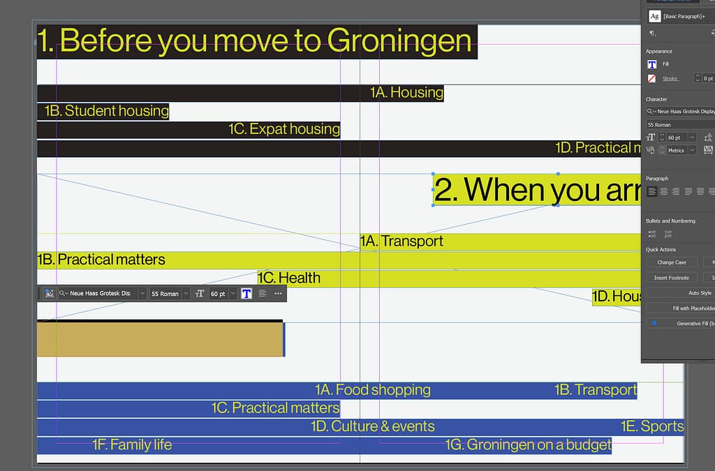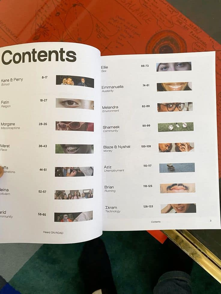 Here I am trying to work on the tables of contents first and create a general feel for the magazine.