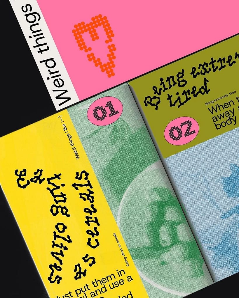 I collected these designs because their bold use of colours, bold typography and unique layouts was very inspiring for me. These designs have a lot of radical design decisions but still end up being legible, nice to read magazines. I want to see how I can also balance these two things. As I don’t want to sacrifice legibility for aesthetics.