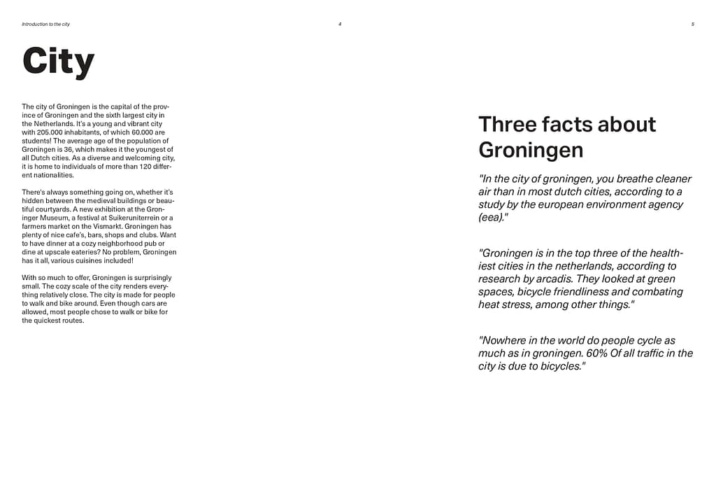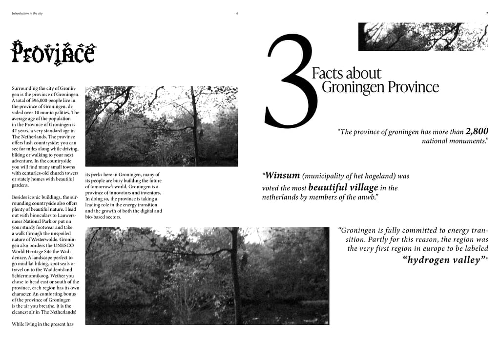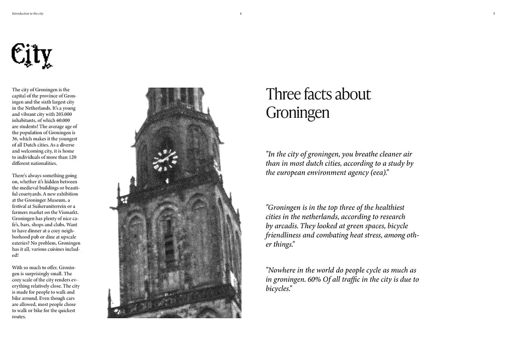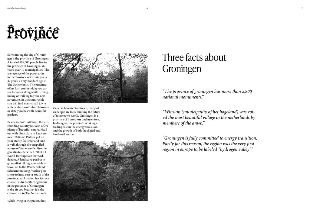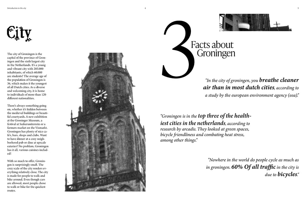 I tried to be more experimental with the type and the layouts, I still plan on working more on this. I used some film photos of Groningen and made them black and white to give them a different feeling.