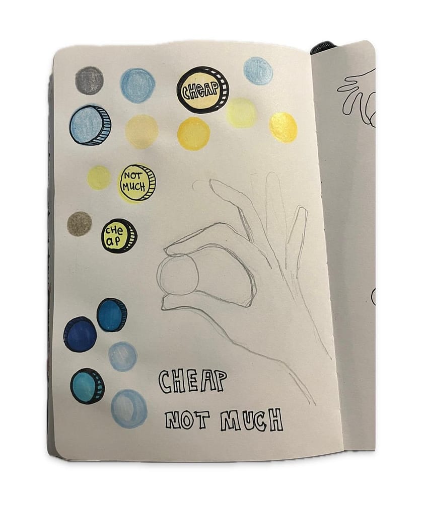 I was thinking immediately about a hand holding a coin to ‘express’ (low)- budget.