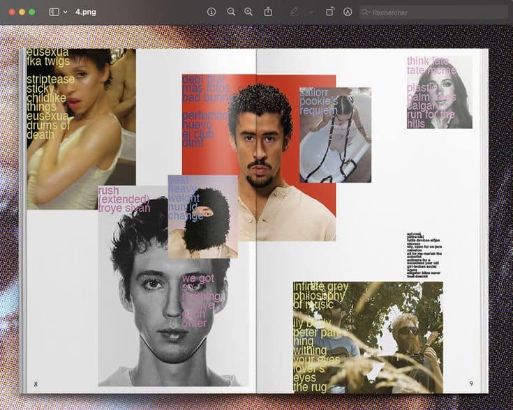 2. I love the sort of collage style combined with overlaying text on this spread.