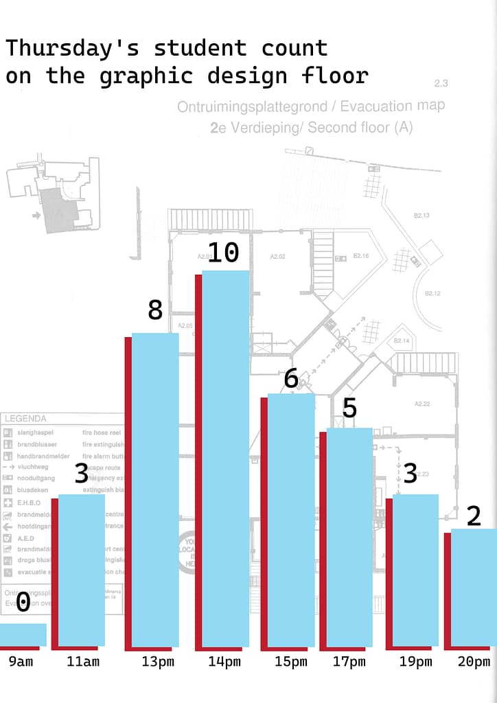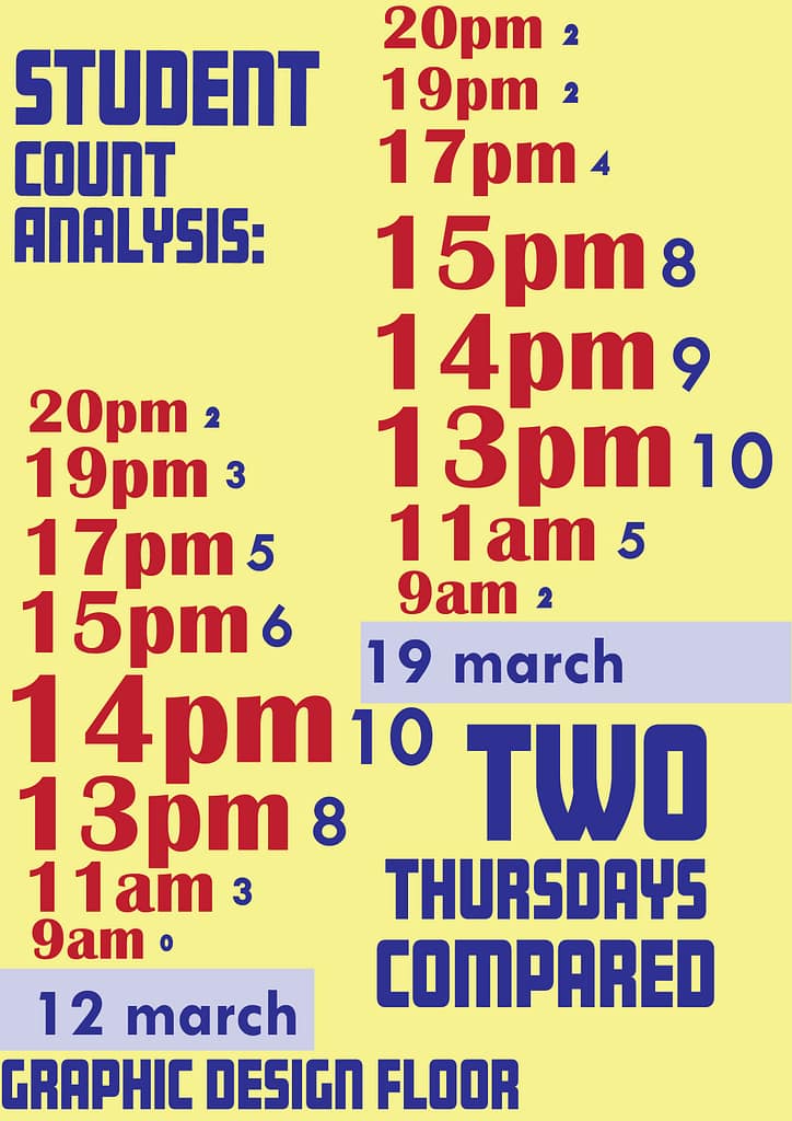 I redesigned my infographic about student count on the graphic design floor(now I compared two days)