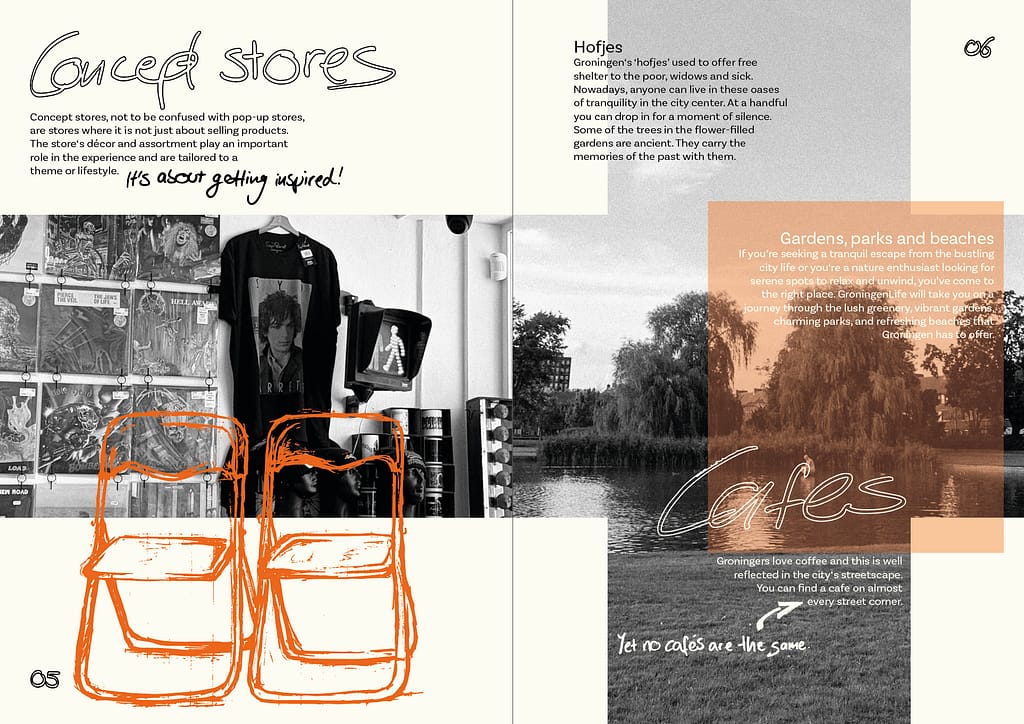 Color palette: Orange, black and white/beige; to highlight the national color of the netherlands