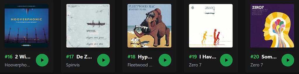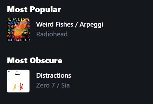 I'm interested in the amount of time I spend listening to music in a day and then how this time is made up. I wish there were statistics on what music I listened to during what hour of the day. Maybe then I could figure out my mood during each morning of the month or something.